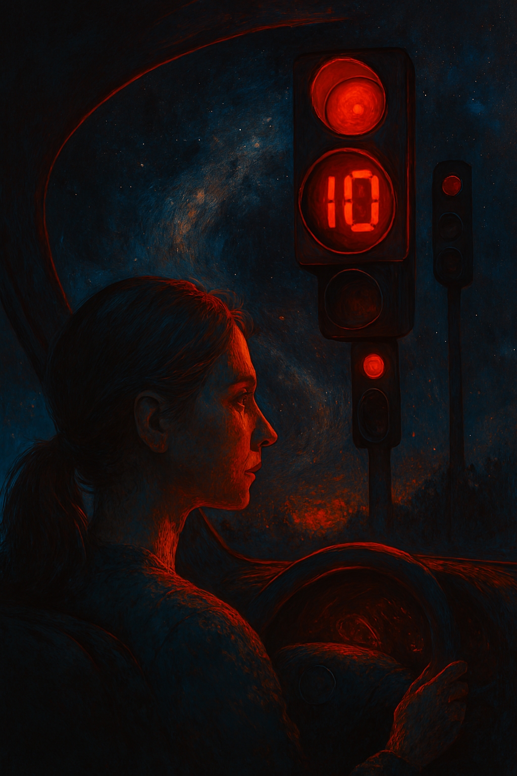 پشت چراغ قرمز هستی ،خیره شده ای به گذر ثانیه ها ، دلشوره ی ریزی زیر پوستت حرکت میکند، به تابلو چراغ نگاه میکنی و ناخودآگاه شمارش معکوس را در دلت ادامه می دهی.