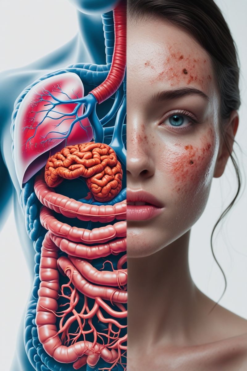 بین روده و پوست یک محور ارتباطی قوی وجود داره به نام Gut–Skin Axis. عدم تعادل باکتریهای مفید و مضر در روده (Dysbiosis) میتونه باعث التهاب مزمن و بهدنبال اون، آکنه یا حتی روزاسه بشه.