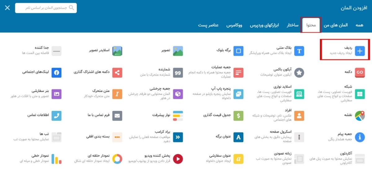 ماژول های محتوا برای تصاویر، متن، ویدئو، دکمه ها و موارد دیگر