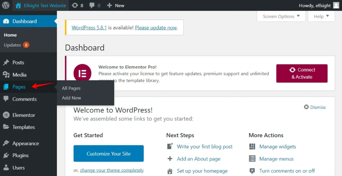 وارد پنل مدیریت وب سایت وردپرس خود شوید و صفحه ای را که می خواهید دکمه چت WhatsApp خود را در آن اضافه کنید پیدا کنید: