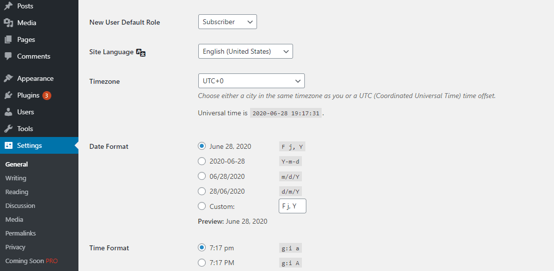 اکنون وقتی به صفحه تنظیمات وردپرس می روید، زبان تازه نصب شده باید برای انتخاب در لیست کشویی زبان سایت در دسترس باشد.