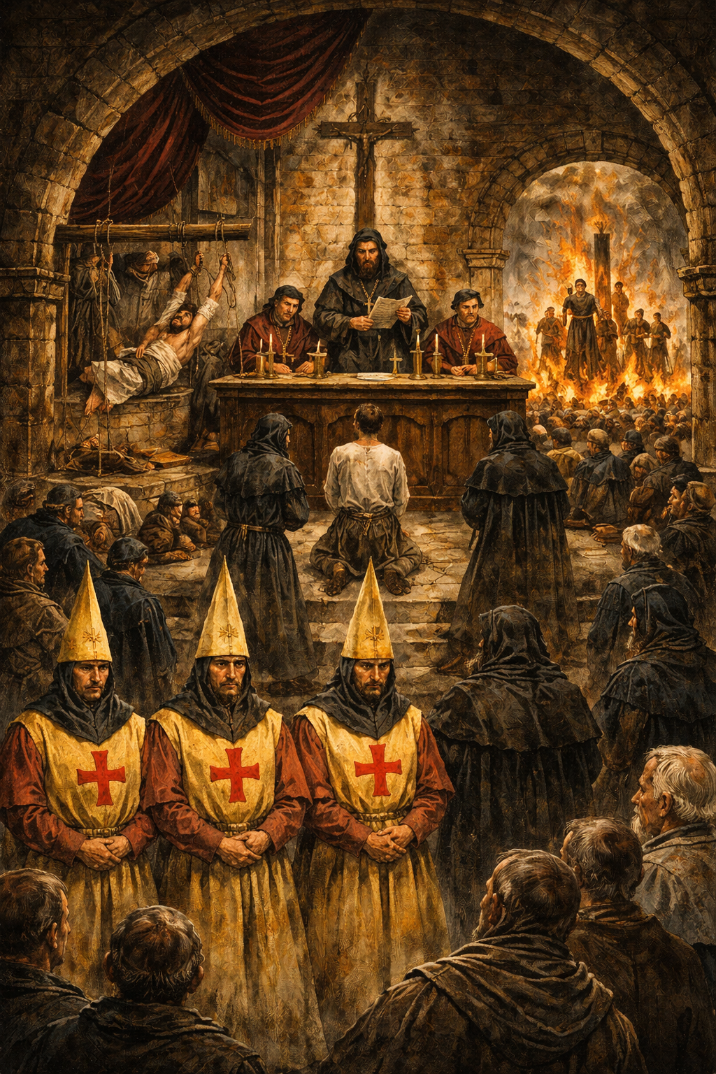 دادگاههای تفتیش عقاید اسپانیا یکی از طولانیترین، منسجمترین و در عین حال هولناکترین نهادهای سرکوب مذهبی در تاریخ اروپا بودند؛ نهادی که نهتنها ابزار دفاع از ایمان کاتولیک تلقی میشد، بلکه بهتدریج به سازوکاری برای کنترل اجتماعی، حذف سیاسی، مهندسی هویت مذهبی و حتی مصادره ثروت بدل شد. تفتیش عقاید اسپانیایی را نمیتوان صرفاً ادامهای از تفتیش عقاید قرون وسطایی دانست، زیرا این نهاد در اسپانیا شکلی کاملاً دولتی، متمرکز و وابسته به قدرت سلطنتی به خود گرفت و بیش از سه قرن، بر زندگی میلیونها نفر سایه انداخت.