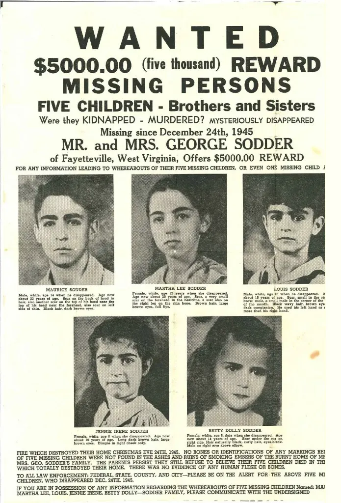 دریافت کارت پستال مرموز: سال ۱۹۶۸ خانواده سودر عکسی از مردی جوان در پست دریافت کردند که نوشتهای در پشتش بود: «لویی سودر، دوستت دارم، برادر کوچک مور، ایلویس، نیویورک». خانواده باور داشتند این یکی از فرزندان گمشده است. پیگیری همچنان ادامه دارد: جرج و جنی تا پایان عمر به دنبال فرزندانشان بودند. تصویر کودکانشان برای دههها بر تابلو اعلاناتی در جاده نزدیکی خانهشان نصب شده بود.