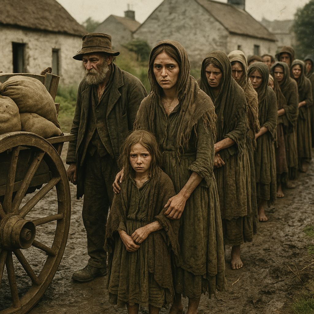 براساس سرشماری ۱۸۴۱، جمعیت ایرلند حدود ۸.۲ میلیون نفر بود و سیبزمینی غذای اصلی بیش از نیمی از این جمعیت محسوب میشد. در نخستین سال شیوع بیماری طبق آمار رسمی، ۴۰ درصد محصول نابود شد و در سال ۱۸۴۶ این رقم به بیش از ۸۰ درصد رسید. تأثیر عمیق این قحطی، مرگ حدود یک میلیون نفر بر اثر گرسنگی مستقیم و بیماریهای ثانویه، و مهاجرت ۱.۲ تا ۲ میلیون نفر عمدتاً به آمریکای شمالی و انگلیس بود.