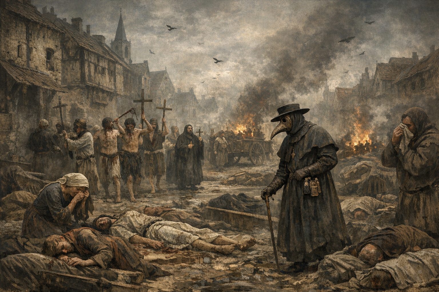بین سالهای ۱۳۴۶ (یا ۱۳۴۷ شروع موج اروپایی) تا حدود ۱۳۵۳ میلادی، همهگیریای روی داد که در تاریخ به «طاعون بزرگ» یا «مرگ سیاه» شناخته میشود و بخش بزرگی از اروپا، خاورمیانه و شمال آفریقا را دربرگرفت. برآوردهای مرگ و میر متفاوتند اما اجماع منابع مرجع این است که دهها میلیون نفر در این دوره جان باختند و در بسیاری از مناطق اروپا بین حدود ۳۰ تا ۶۰ درصد جمعیت از بین رفتند — تأثیری که ساختارهای اقتصادی، اجتماعی و فکری قاره را عمیقاً دگرگون کرد.