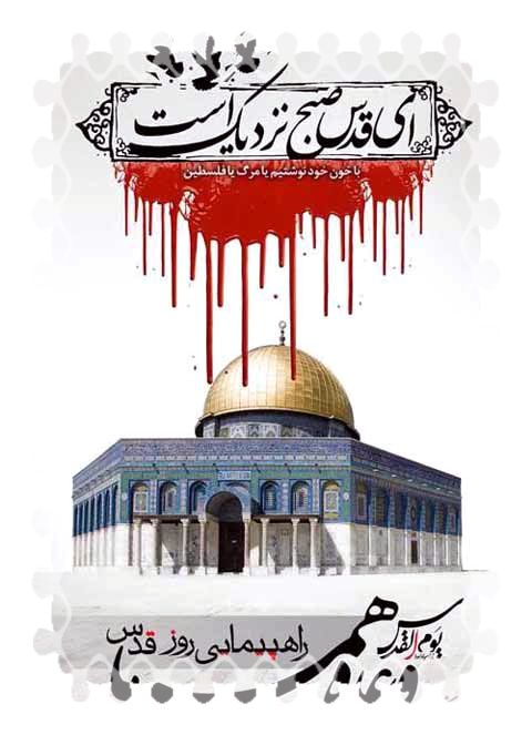 روز قدس ، روز حیات اسلام است.پس همه برای دفاع از ۱۸۰ کودک فلسطینی که طی یک روز در غزه توسط رژیم صهیونیسم کشته شدند و این جنایتکار آدم کش را محکوم می کنیم و آزادی قدس را سر می دهیم.