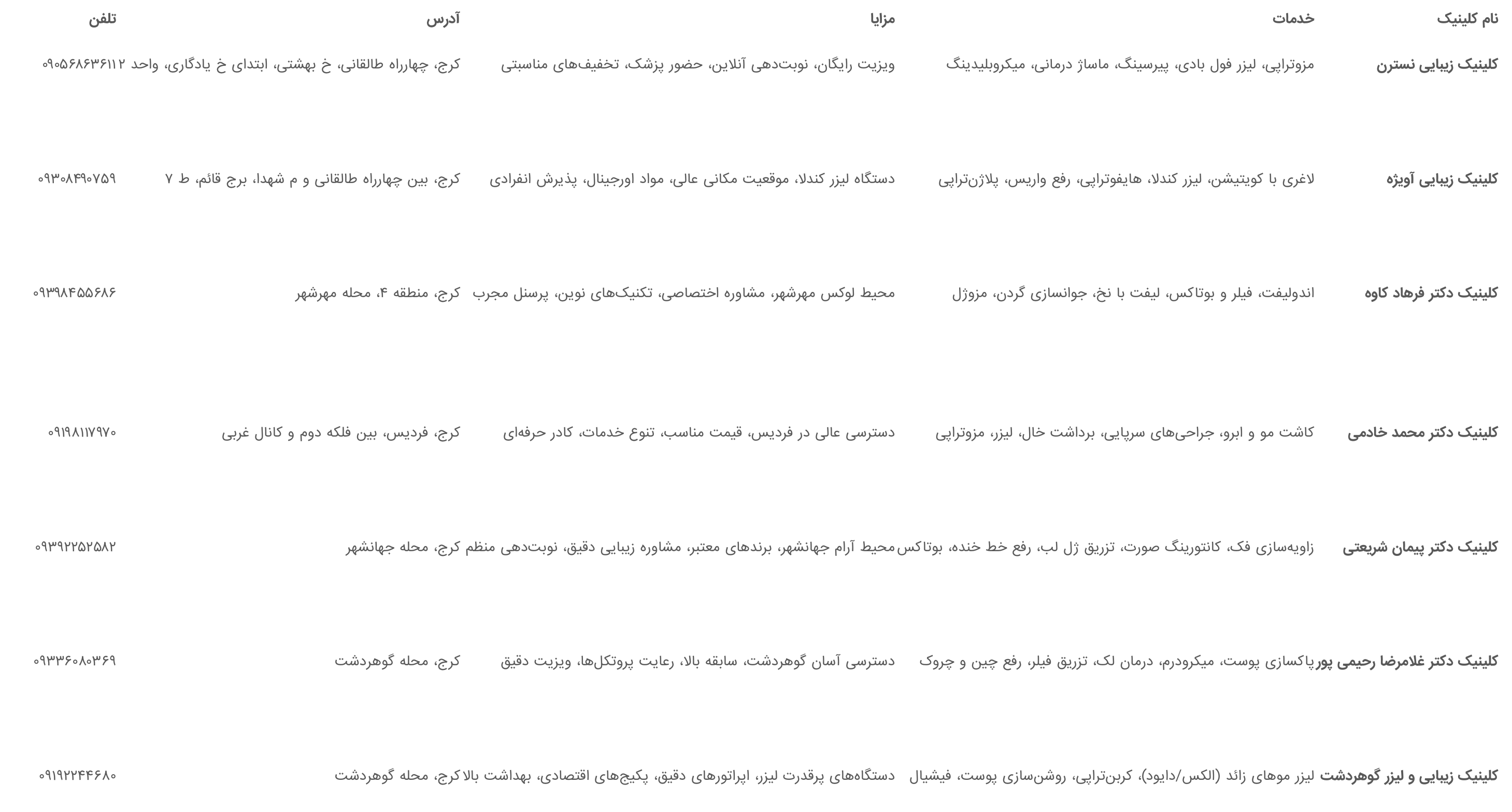 اما بهترین کلینیک زیبایی کرج برای شما صرفاً نزدیکترین آنها نیست؛ بلکه جایی است که ترکیبی از تخصص پزشک، تجهیزات مدرن و مواد مصرفی باکیفیت را ارائه دهد. خدمات زیبایی در این شهر طیف وسیعی را شامل میشود؛ از لیزرهای پیشرفته و کاشت مو در فردیس و گوهردشت گرفته تا زاویهسازیهای مدرن و درمانهای لوکس پوستی در مهرشهر. در این مطلب تلاش کردهایم با بررسی دقیق، لیستی از برترین مراکز را گردآوری کنیم تا انتخابی هوشمندانه و مطمئن داشته باشید.