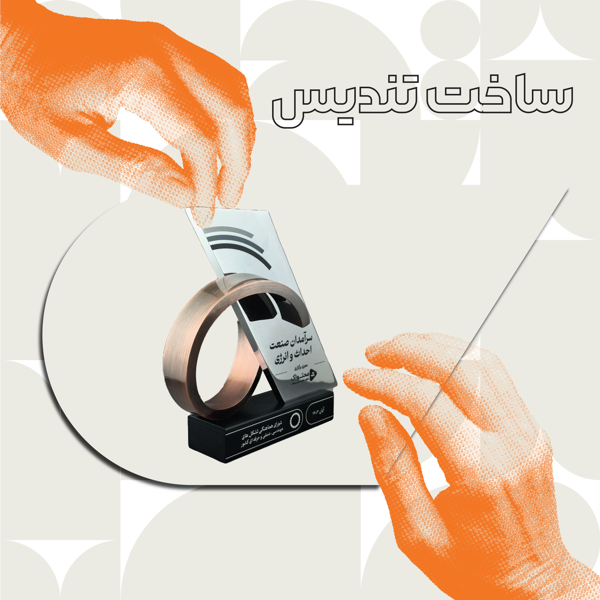 طراحی تندیس: طراحی تندیس قلب فرآیند ساخت است. طراحان با استفاده از نرمافزارهای پیشرفته، طرحی را خلق میکنند که بیانگر هویت برند و مفهوم مراسم شما باشد. این طراحی میتواند به صورت دو بعدی یا سه بعدی انجام شود و تا تایید نهایی شما قابل اصلاح است.