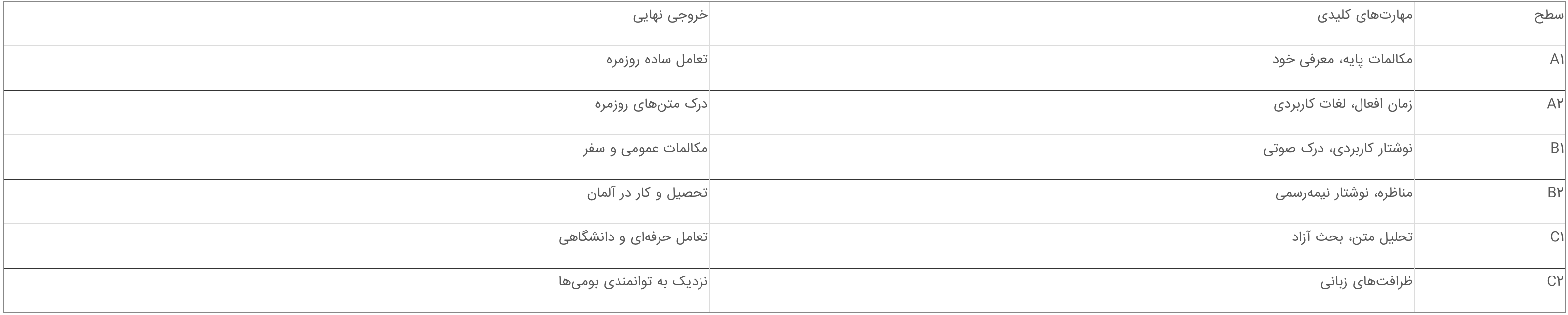 آموزش زبان آلمانی در مؤسسات حرفهای بهصورت مرحلهای و براساس استاندارد CEFR پیش میرود. یعنی زبانآموزان از سطح A1 شروع میکنند و تا سطح C2 ادامه میدهند. این طبقهبندی کمک میکند هر زبانآموز، دقیقاً بداند در کدام مرحله قرار دارد و باید چه اهدافی را دنبال کند.