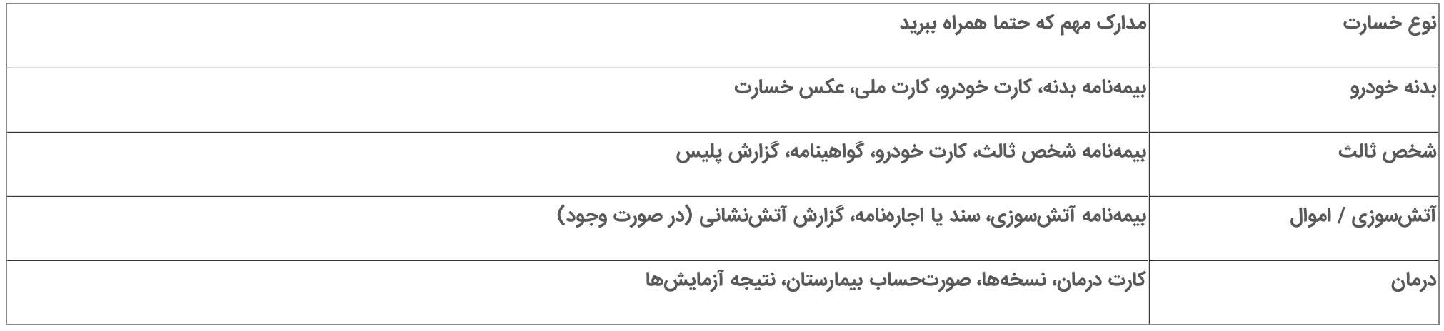 ساعات مراجعه را چک کنید: همه شعب خسارت لزوما تا آخر وقت اداری باز نیستند. قبل از حرکت، ساعت کاری شعبه را از سایت یا تلفن استعلام کنید.