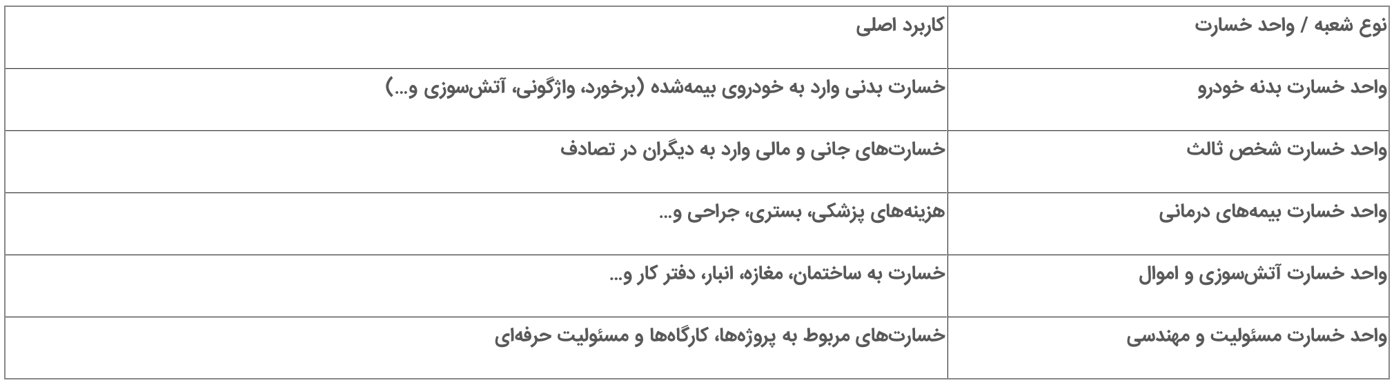 بهطور کلی، شعب و نمایندگیها را میشود در چند گروه اصلی دید. بسته به نوع حادثه، مقصد شما یکی از اینهاست: