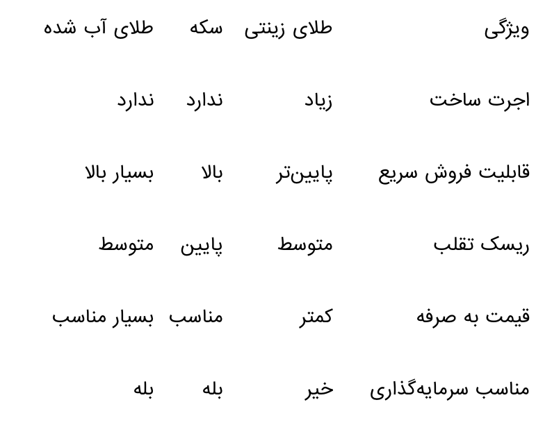 بسیاری از مردم هنوز تفاوت طلای آب شده با سکه و زیورآلات را نمیدانند. در این بخش، این تفاوتها را شفاف بررسی میکنیم: