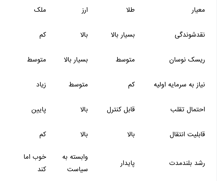 نتیجهگیری: برای سرمایهگذاران با افق کوتاه تا میانمدت و دارایی متوسط، طلای آبشده یا شمش کوچک میتواند گزینهای بسیار مناسبتر از ملک یا ارز پرریسک باشد.