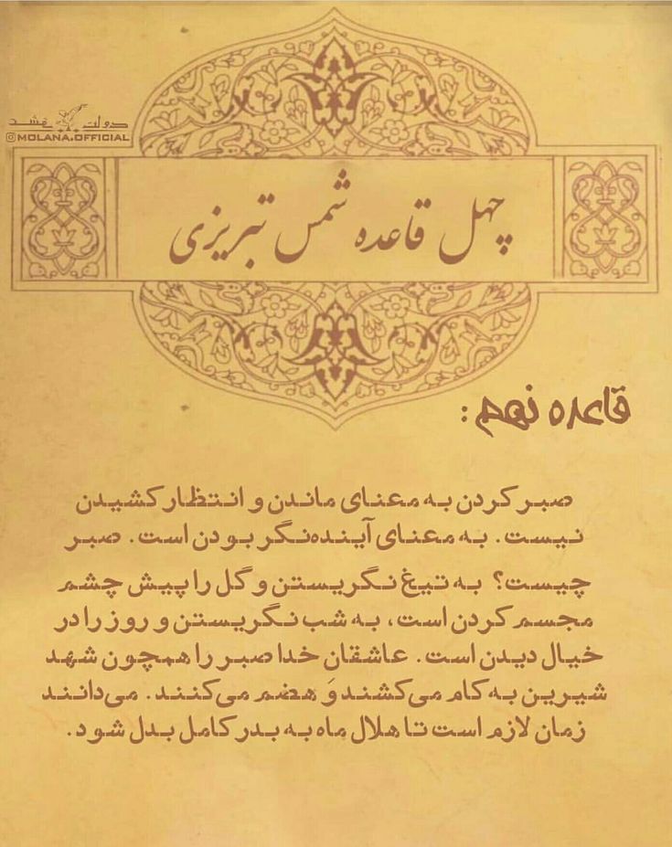 اتفاقی این تصویر که قاعدهی نهم از چهل قاعدهی شمس است را دیدم.