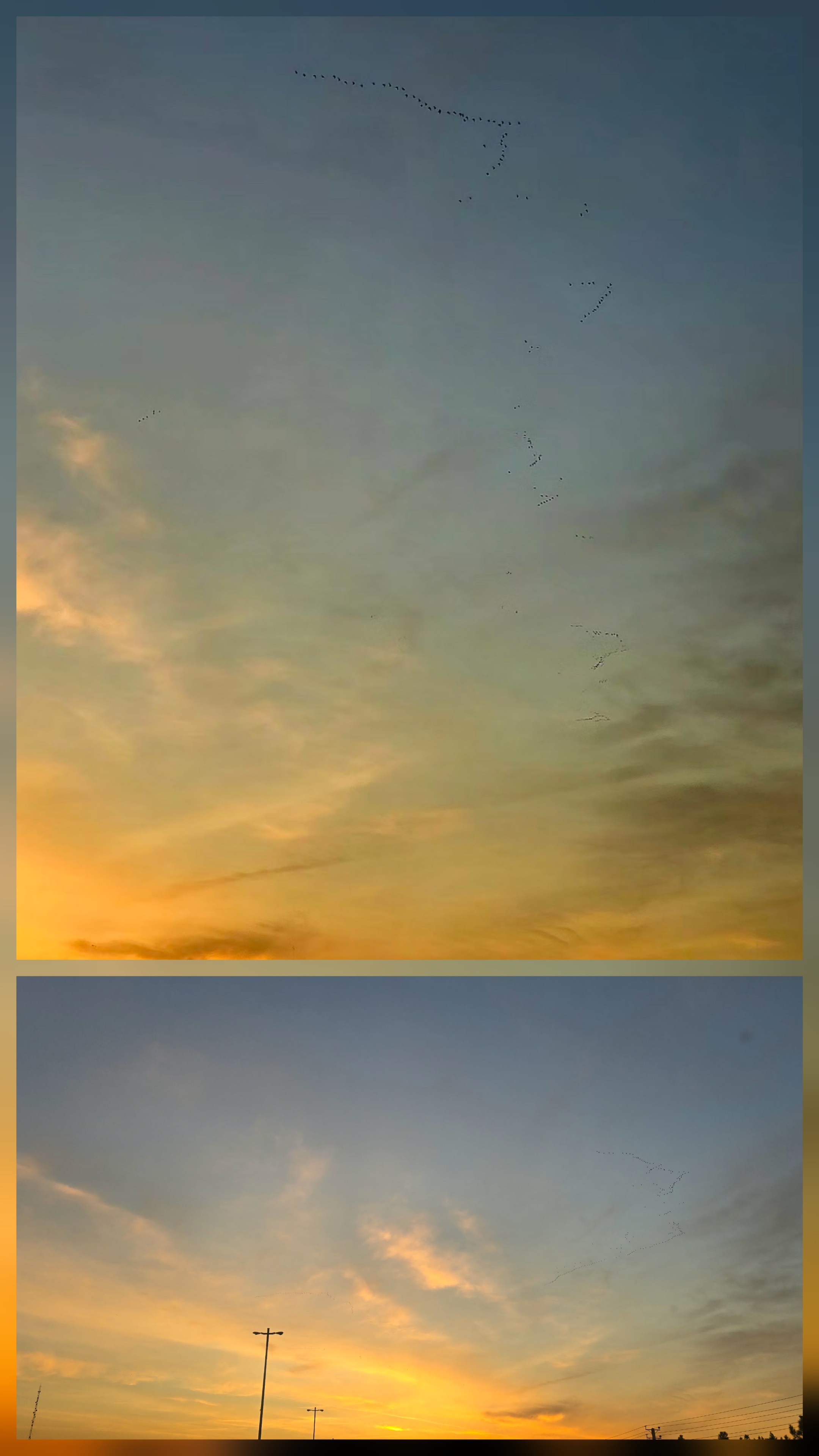دیشب و دیروز به سردرد گذشت. صبح هم با سردرد بیدار شدم. ساعت ۶ دوش گرفتم و آماده شدم تا ۶.۳۰ از خانه زدم بیرون و چون دیروز شده بود با ماشین به جای مترو رفتم سمت دانشگاه... طلوع آنقدر زیبا بود که برای لحظاتی سردردم را فراموش کردم. همینطور که خیره به افق بودم و از دیدن طلوع لذت میبردم. ناگهان دستههای بزرگ پرندگان مهاجر را دیدم. به هیجان آمده بودم از بس که دیدنشان حالم رو خوش کرده بود.