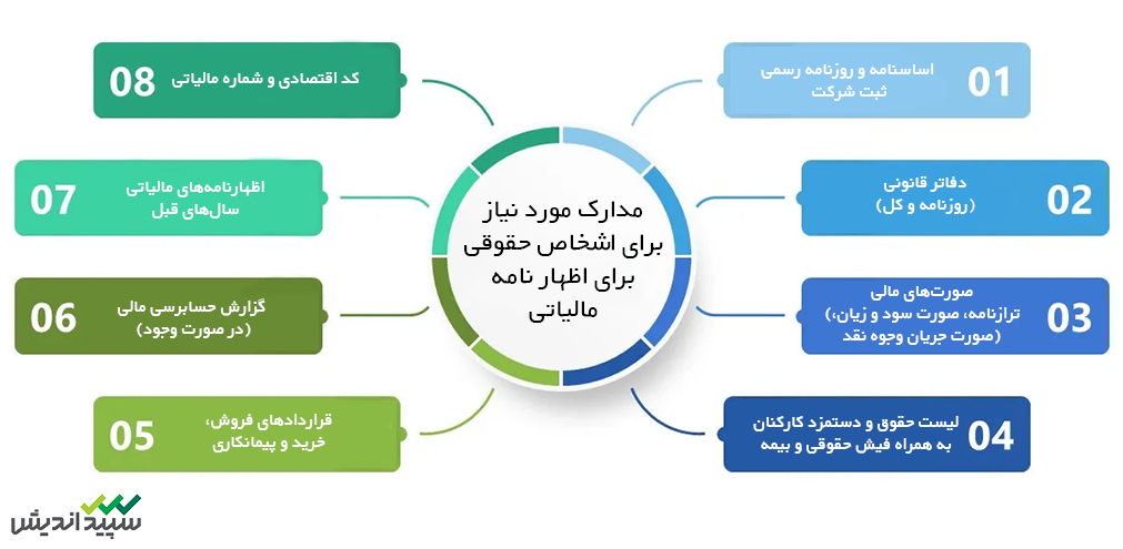 کارت ملی، کد اقتصادی، مدارک درآمد و هزینهها، لیست بیمه کارکنان و اظهارنامههای سالهای گذشته (در صورت وجود).