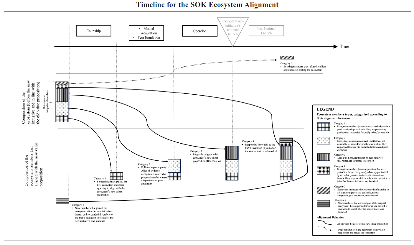 در نهایت، وقتی روشهای قبلی کافی نبود، SOK به اجبار روی آورد. این مرحله شامل الزامات سختگیرانه، مانند پردازش الکترونیکی اجباری سفارشات از طریق پلتفرم S Net و جریمههای مالی برای عدم پیوستن بود. این اقدامات برخی از مرددها را به پیوستن واداشت، اما گروه کوچکی که هزینهها را زیاد میدیدند یا نگران از دست دادن استقلال خود بودند، اکوسیستم را ترک کردند. این فرآیند نشان داد که همترازی در اکوسیستمهای بالغ یک فرآیند تکراری و چندجانبه است که نه تنها از هاب به اعضا، بلکه از اعضا به هاب و حتی بین خود اعضا جریان دارد. تنش بین تمایل هاب به کنترل و خواست اعضا برای حفظ استقلال، نیروی محرکه این فرآیند است.