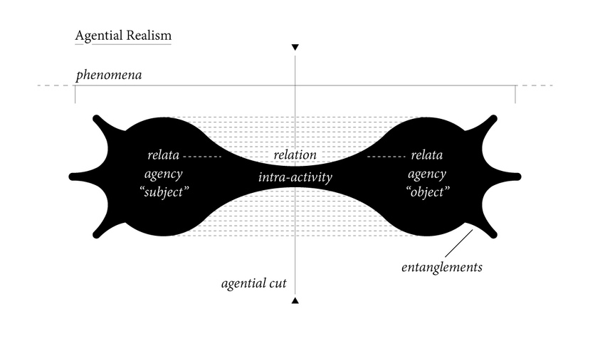 اشیاء و معنایی که نسبت به آنها داریم، پیش از تعامل وجود ندارند؛ بلکه در تعاملهای مادی و گفتمانی درونِ عمل شکل میگیرند. به عبارت دیگر، "اشیاء و انسانها"، "سوژه و ابژه"، "معنا و ماده"، همگی به گونهای در هم تنیدهاند. جوامع در واقعیت مجموعه فرایندهایی از درهمتنیدگی (entanglement) و درهمکنش (intra-action) هستند که ما آنها را به اشتباه به صورت موجودات مستقل درک میکنیم.