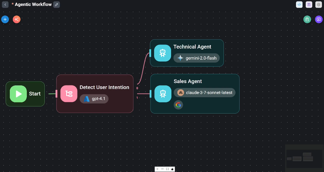 شروع سریع بدون کدنویسی، drag-and-drop، قالبهای آماده، گرههای Chat/LLM ابزار-ها و امکان تنظیم baseURL/endpoint سازگار با OpenAI به شما اجازه میدهد در چند دقیقه شروع کنید.