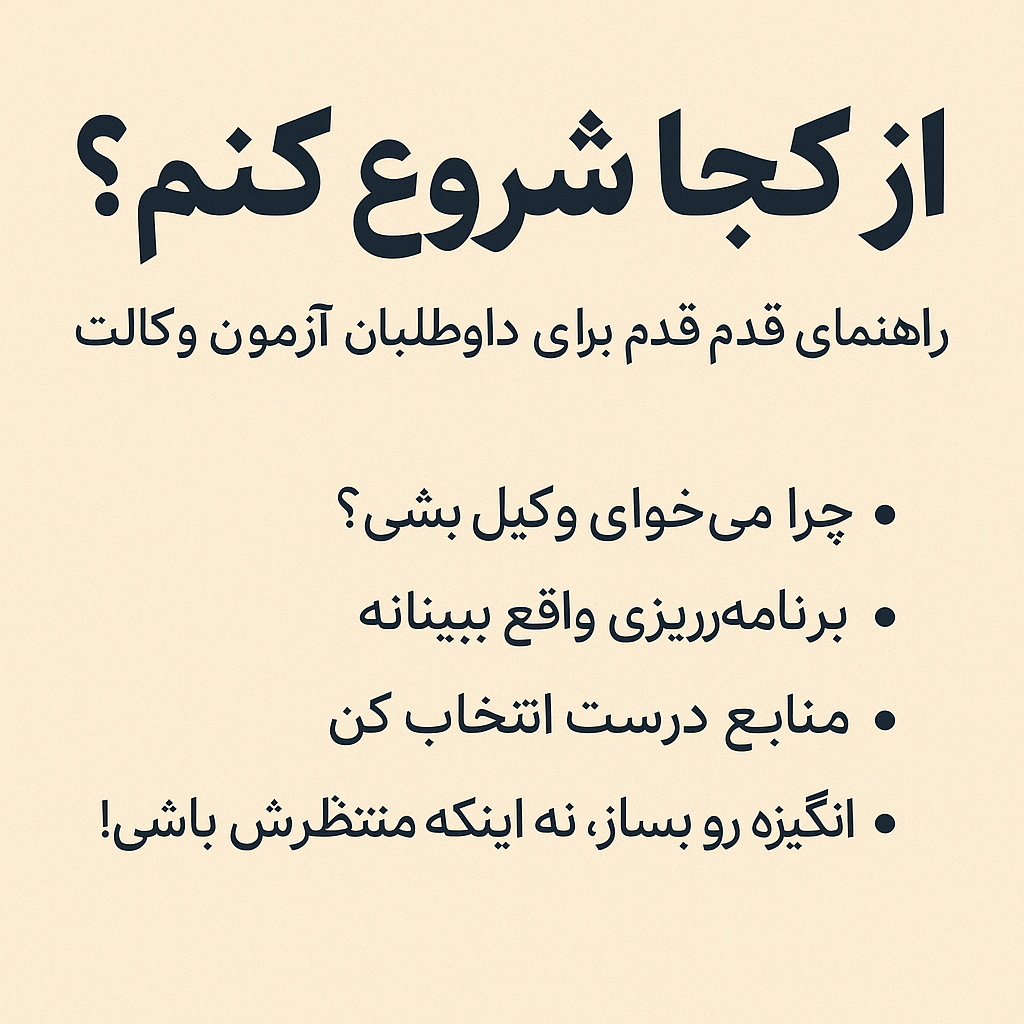 اگر تازه تصمیم گرفتی برای آزمون وکالت بخونی، ممکنه تو ذهنت پر از سؤال باشه: