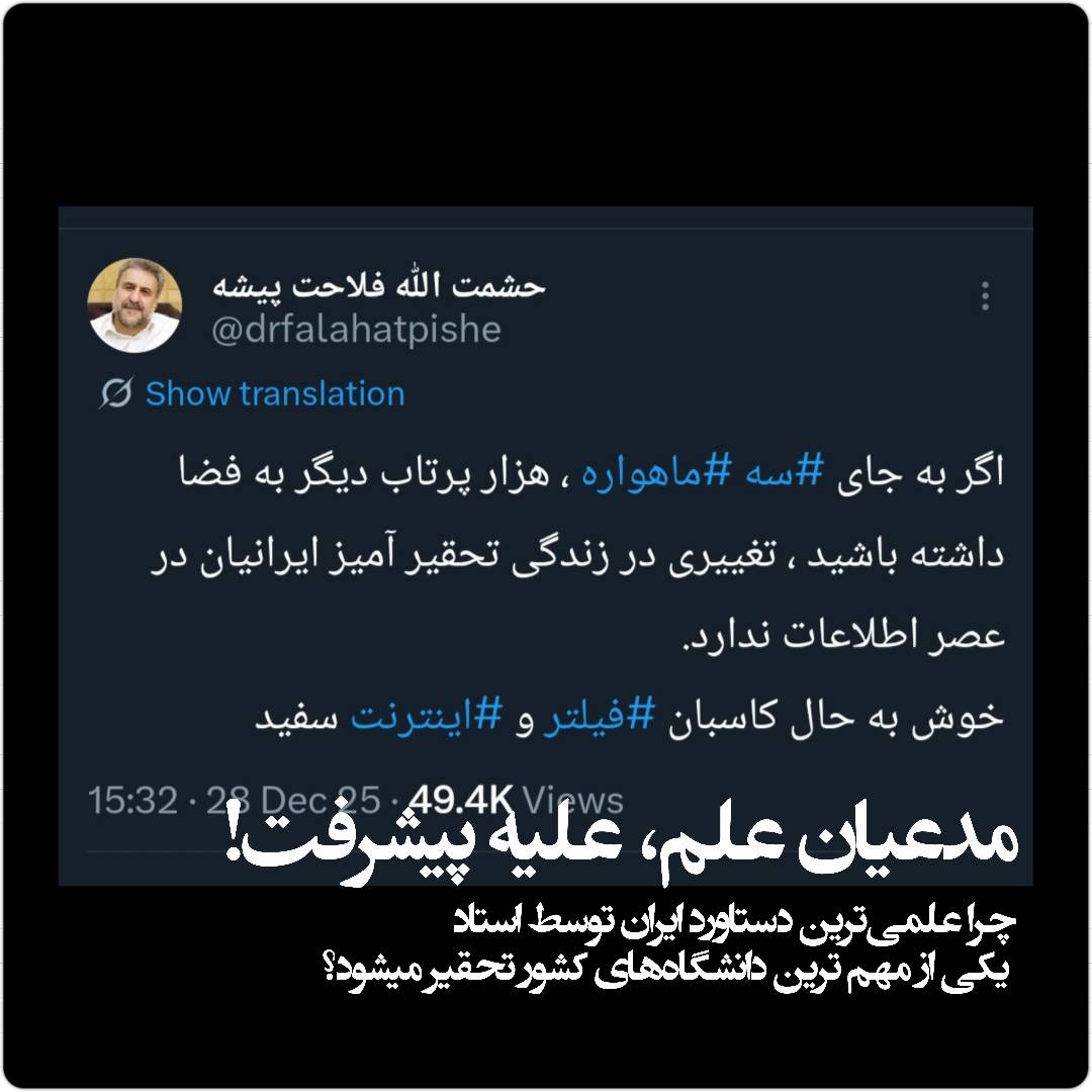 استادی که در نهاد علم مشغول به کار است، سالانه صدها دانشجو را پرورش میدهد و در بزرگترین دانشگاه علوم انسانی جنوب غرب آسیا تدریس میکند، یا نسبت به جایگاه خود، جایگاه مردمش و مسیر پیشرفت کشورش ناآگاه است، یا عامدانه زندگی مردمی که نجیبانه و صبورانه قلههای علم و دانش را فتح میکنند را تحقیر میکند.