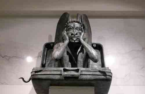 بعد بیشتر بگردی، نقاشیهای موجودات فضایی سبز با چشمان بزرگ را میبینی که به تو نگاه میکنند. سپس مجسمهای از شیطان یا گارگویل (گرگسنگ) که انگار از داخل یک چمدان بیرون آمده و با تمسخر به استقبالت آمده!