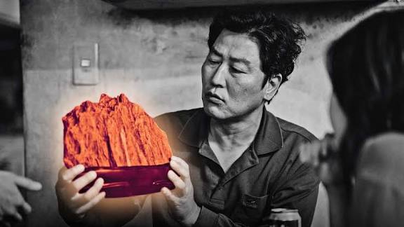 در مقابل این میوه نرم و فاسدشدنی، سنگ عالمانه قرار دارد: شیئی سنتی که در فرهنگ کره و چین، مانند طلسمی برای موفقیت تحصیلی و مالی تلقی میشد. سنگهای suseok اغلب در اتاق مطالعه یا باغهای اشرافی نگهداری میشدند و باور بر این بود که شکلهای طبیعی و منظرهمانندشان انرژی مثبت و ثروت میآورند. در فیلم، مین — دوست سابق ثروتمند کی-وو — این سنگ را به خانواده کیم هدیه میدهد و آن را «سنگی که شانس میآورد» توصیف میکند. خانواده کیم، در عمق فقر و ناامیدی، آن را با امیدی تقریباً ماورائی در آغوش میگیرند؛ سنگ برای آنها نماد کلیدی است به سوی دنیای پارکها، پلی به سوی صعود اجتماعی.