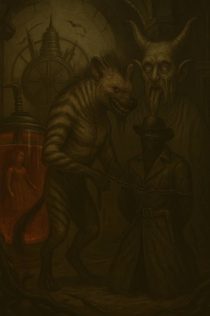 از میان انبوه تاریکی آن صحن ،دوباره آن موجود انسانما ظاهر شد درحالیکه یال هایش موخوره گرفته بود و خز راه رایش را میخراشید .