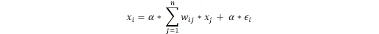 در اینجا wij وزن یال بین عامل i و j در ماتریس مجاورت شبکه W است. ϵi شوک مستقل و ناشی از خودِ عامل i است.