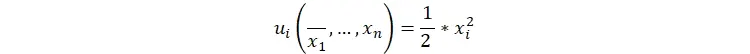 یک بازی با n بازیکن و با اطلاعات کامل را در نظر بگیرید[8] که در آن تابع مطلوبیت (سود) عامل i به صورت زیر داده شده است: