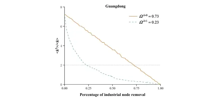 از منظر نظریه شبکهها، اقتصاد منطقهای یک سیستم پیچیده با آستانههای بحرانی مشخص تلقی میشود. یافتههای حاصل از اجرای آزمون تنش نشان میدهد که حذف صنایع به صورت تصادفی یا هدفمند (حذف هابهای با درجه اتصال بالا) میتواند به فروپاشی ساختاری منجر شود. در شبکههایی که حول چند هاب مرکزی سازمانیافتهاند، نوعی پارادوکس مشاهده میشود: این سیستمها در برابر شوکهای تصادفی مقاوم، اما در برابر حذف هدفمند گرههای کلیدی بهشدت آسیبپذیرند. بنابراین، ویژگیهای توپولوژیک شبکه و نحوه توزیع پیوندها، تعیینکننده نهایی سطح تابآوری منطقهای است (Qiao & Ji, 2021).
