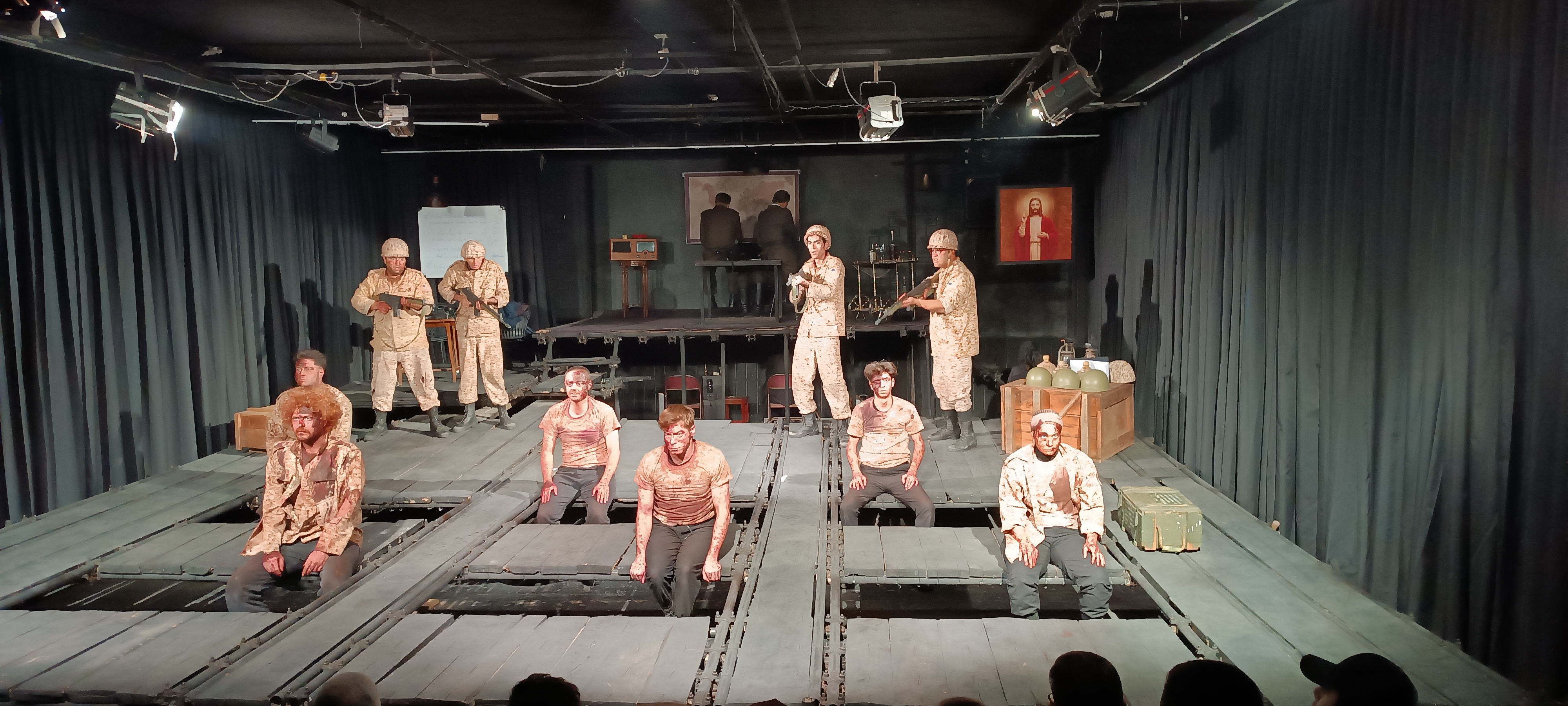 این پیام امروز نه بر پرده سینما یا بوم نقاشی، بلکه بر صحنه تئاتر تجسم یافته است. نازیلا ایرانزاد با اجرای ترکی این نمایشنامه در تبریز پس از 89 سال از اجرای نخست آن در نیویورک، با درکی عمیق از این مسئولیت، بار دیگر اجساد آن شش سرباز نمادین را از گور بیرون میآورد تا دادخواهی آنان را به گوش انسان برساند.