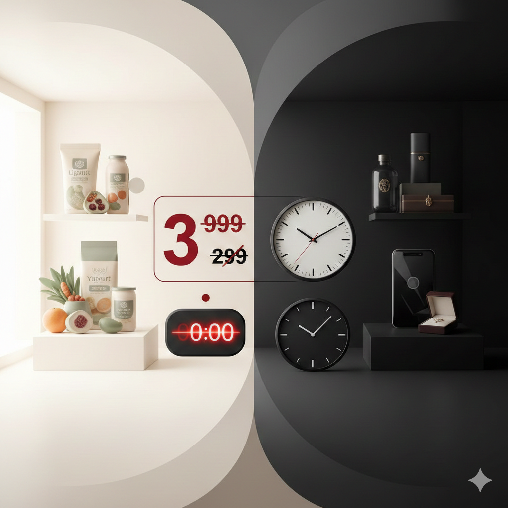 فروشهای فوری (Urgency): برای مهلتهای زمانی کوتاه (مثلاً تخفیف پایان ساعت)، از رنگهای گرم و اشباعشده مثل قرمز استفاده کنید تا زمان «نزدیکتر» حس شود.