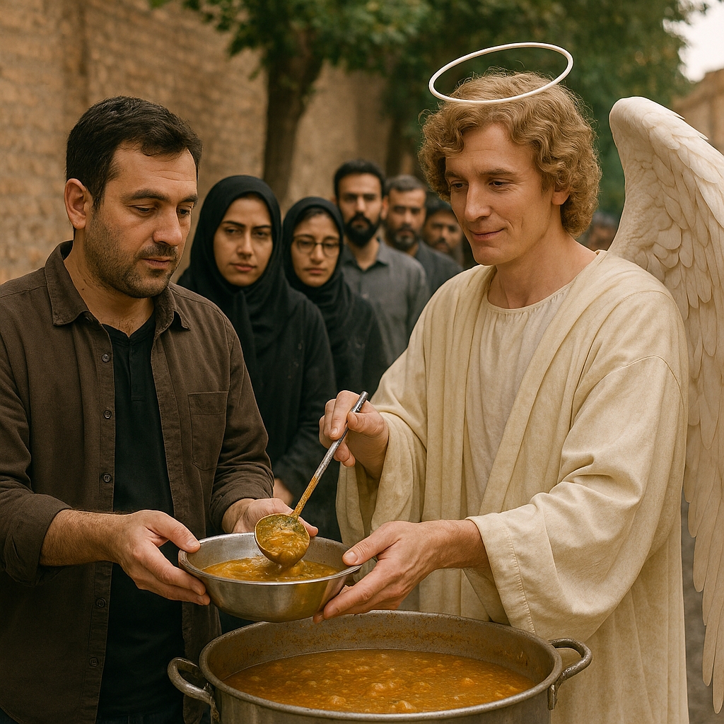 خدا گفت: نگو؛ خیلی وقت است که هوس شله کردم. از آن عالمِ بالا؛ چنان گوشتها بهت چشمک میزد که گفتیم با جبرئیل یک سر بزنیم اینجا تا چیزی هم به ما برسد ولی غمت نباشد جبرئیل را زودتر از خودم فرستادم تا بیاید و جا بگیرد.