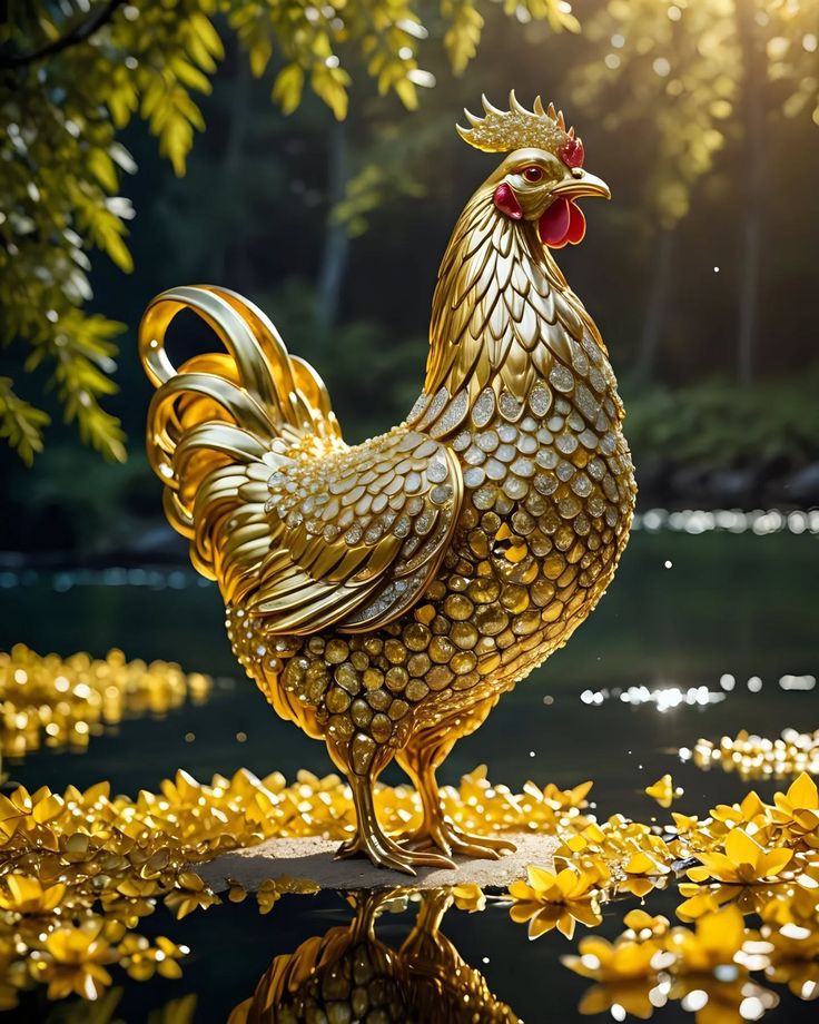 و خروسکِ طلایی را از خاک بیرون کشید.