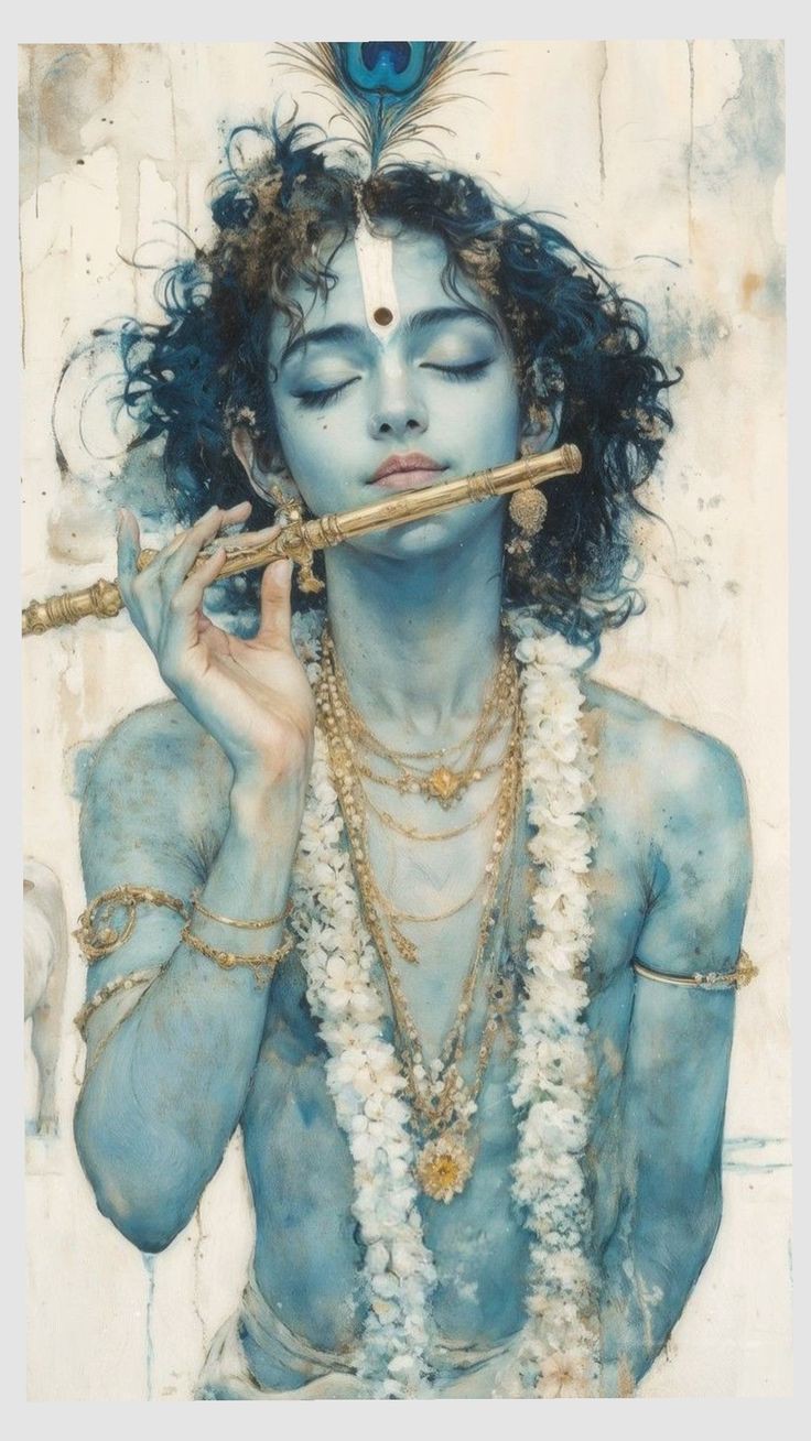 و بچهی هشتم؛ در شبی طوفانی و عجیب در زندانِ ماتورا به دنیا آمد کودکی با پوستِ آبی که " کریشنا" نامگذاری شد. در همین هنگام کلامِ وحی به پدرِ کریشنا نازل شد و به او دستور داد که نوزاد را نوزادی دیگر در کنارِ رودخانه تعویض کند. او به سمتِ رودخانه رفت و در آنجا نوزادِ دختری را دید که داخل سبد خوابیده است. کریشنا را داخلِ سبد گذاشت و نوزاد را به مارِ هفتسر رودخانه سپرد تا به جای امنی برساند.