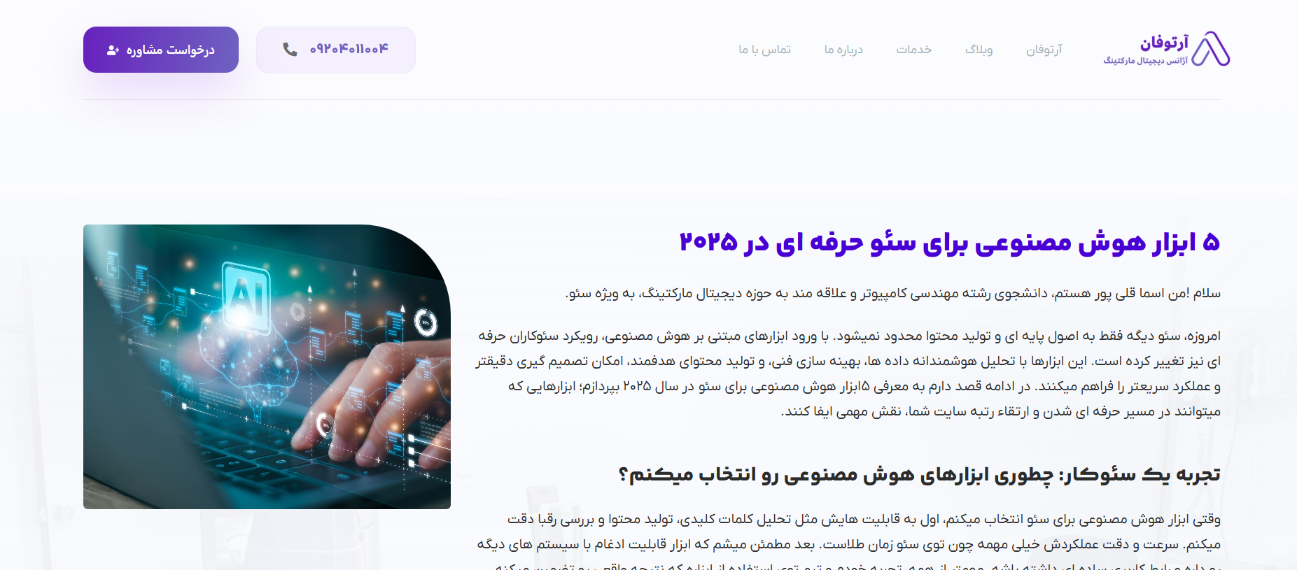 فقط کافیه نگاهی به مقاله ام با عنوان 5 ابزار هوش مصنوعی برای سئو حرفه ای در 2025 که در سایت آرتوفان نوشتم بندازی :)