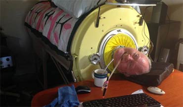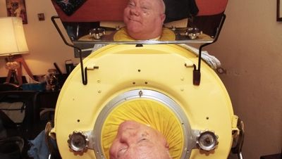 در این 61 سال اودرون این ریه زندگی میكندوبجزسروگردنش نمیتواندجای دیگری از بدنش راحركت دهد.دست وپای ز گردن به پایین كاملا فلج هستند. حتی عضلات قفسه سینه او هم فلج است و نمیتواند تنفس كند.