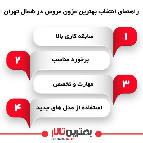 بهترین مزون عروس در شمال تهران طیف وسیعی از انواع لباس عروس را با مدل های مختلف در اختیار مشتریان می گذارد. بسیاری از زوجین بودجه مشخصی را برای اجاره و خرید لباس عروس کنار می گذارند. به همین خاطر مزون باید انواع لباس های عروس با قیمت های مختلف را در اختیار داشته باشد. علاوه بر این شما می توانید از این مراکز لوازم جانبی مرتبط با لباس عروس مانند تور، تاج و چتر عروس را نیز تهیه نمایید. قبل از انتخاب مزون بررسی کنید که قیمت پیشنهاد شده، تمامی خدمات مورد نیازتان را پوشش می دهد. این کار از اخت هزینه های اضافی جلوگیری می کند.