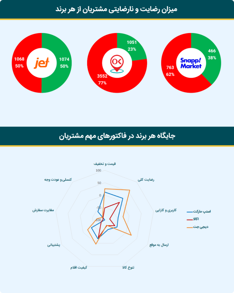 اکنون میتوانیم میزان رضایت یا عدم رضایت کل و همچنین به تفکیک هر دستهبندی را در بازار کالاهای تند مصرف به دست آوریم.