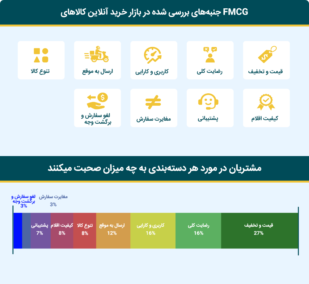 به این صورت میتوان فهمید که افراد در بازار خرید آنلاین کالاهای تند مصرف، درباره چه موضوعاتی بیشتر دغدغه داشته و صحبت میکنند.