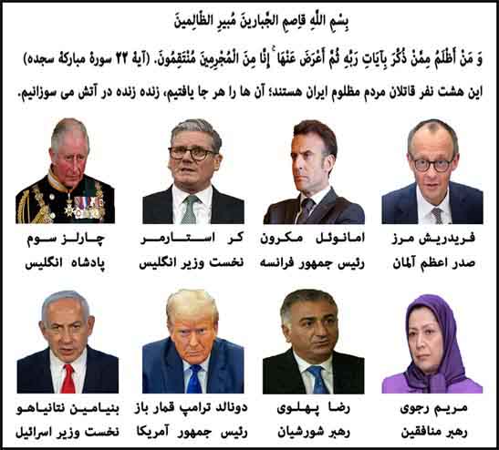 این هشت نفر قاتلان مردم مظلوم ایران هستند؛ آن ها را هر جا یافتیم، زنده زنده در آتش می سوزانیم.