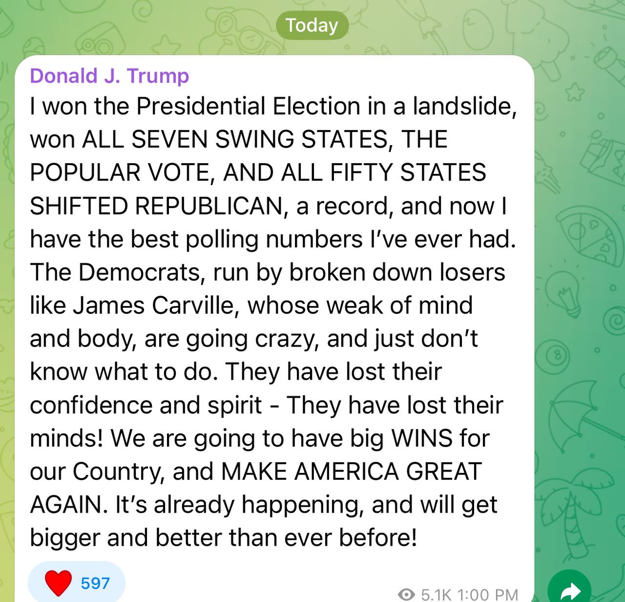من با #جمهوری ( تمام پنجاه ایالت امریکا) ، برنده شدم ( میفهمی؟)