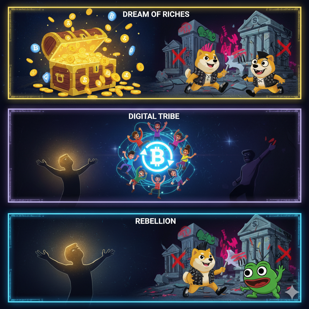 انسان موجودی اجتماعی است و نیاز به تعلق دارد. وقتی شما یک میم کوین میخرید، فقط یک دارایی دیجیتال به کیف پولتان اضافه نمیکنید؛ شما در حال پیوستن به یک باشگاه، یک تیم یا یک قبیله آنلاین هستید.