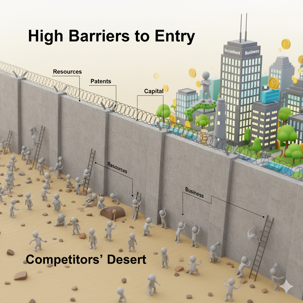 یک کسبوکار موفق به دنبال بازاری است که در آن بتواند یک مزیت عرضه ناکِشسان ایجاد کند. این مزیت، موانع ورود (Barriers to Entry) را برای رقبا بالا میبرد: