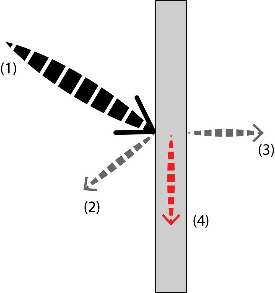 تمام مصالح با توجه به ساختار خود صداهایی که با آنها برخورد می کنند را یا جذب می نمایند یا منعکس می کنند و یا انتقال می دهند.هنگامی که امواج صوتی منعکس شوند باعث افزایش سطح اکو و واژگونی عمومی صدا در یک فضا می شوند.یعنی فضایی کخ با مواد منعکس کننده مانند بتن ساخته شده باشد، چندین تکرار با وضوح کمتر از صدای اولیه ایجاد می نماید که می تواند برای مواردی همچون محل همایش ها یا تجمعات مردمی مناسب باشد.