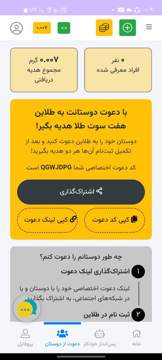 با کد دعوت[ QGWJDPG ]ثبتنام کن و 7 سوت طلای رایگان (معادل 100 هزار تومان) هدیه بگیر