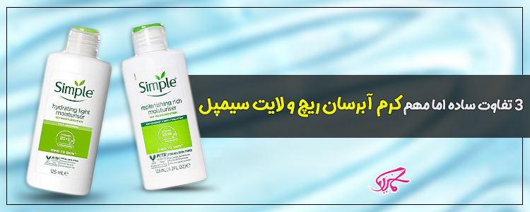 کرم آبرسان و مرطوب کننده سیمپل مدل rich با بافت غنی و آبرسانی عمیق مخصوص پوستهای خشک و حساس طراحی شده است. از طرفی کرم آبرسان Light سیمپل سبک و سریع جذب است و برای پوستهای نرمال تا مختلط و حتی کمی چرب مناسب است. تفاوت اصلی کرم آبرسان ریچ و لایت سیمپل در شدت رطوبترسانی و بافت کرم آنهاست به طوری که ریچ حس آبرسانی طولانیمدت میدهد و لایت احساس سبکی و طراوت پوست را حفظ میکند. با شناخت این تفاوتها انتخاب محصولی که دقیقاً نیاز پوست شما را برطرف کند سادهتر خواهد شد. در این مقاله از سایت لوازم آرایشی بهداشتی ماکیاژ به بررسی تخصصی تفاوت کرم آبرسان ریچ و لایت سیمپل، ترکیبات کلیدی، مزایا و نکات مهم در استفاده از آنها پرداختهایم.