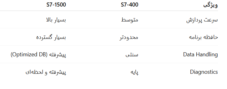 S7-400 برای پروژههای Legacy و بسیار بزرگ مناسب است، اما S7-1500 برای پروژههای جدید، بهینهتر و انعطافپذیرتر طراحی شده است.