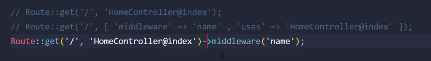 Route::get('/', 'HomeController@index')->middleware('name:par1,par2');